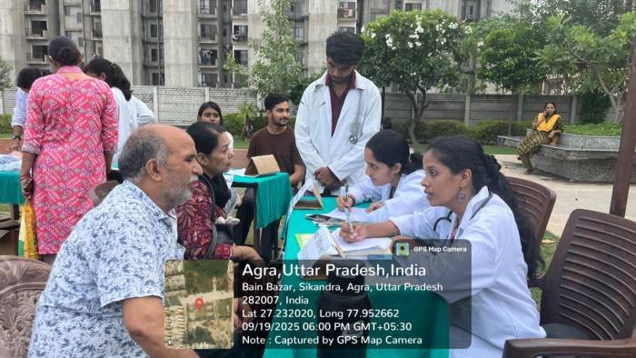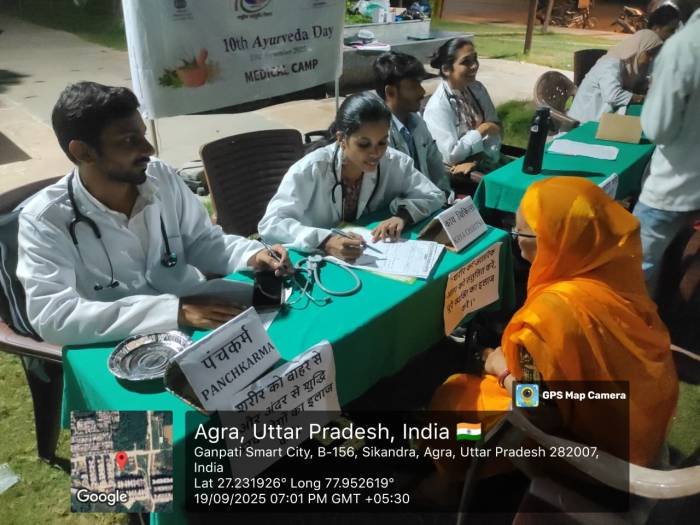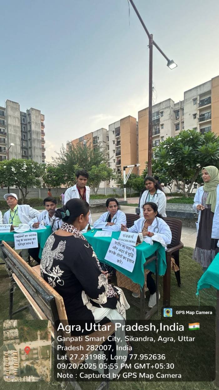 Health Camp Conducted at Ganapati Smart City, Sikandra Agra as a part of Ayurveda Day (20/09/2025)
