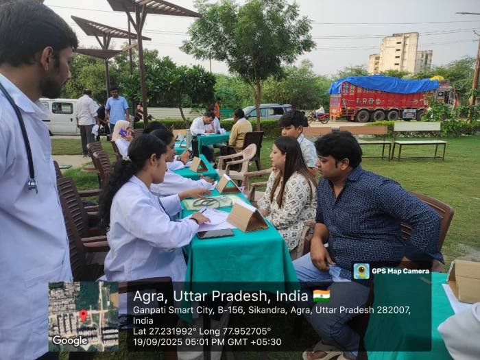 Health Camp Conducted at Ganapati Smart City, Sikandra Agra as a part of Ayurveda Day (19/09/2025)